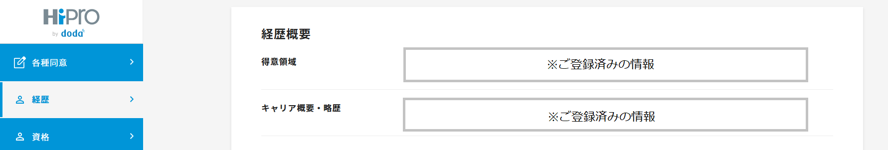 HiPro Techご利用の方向け - 新プロフィールご入力手順書 2025年08月28日 09:12 更新 ==============================================HiPro Techをご利用の皆様このご案内は、2025年9月15日以前にHiPro Techにご登録された方向けのものです。既存の経歴情報を活用して新プロフィールを作成する手順をご案内いたします。なお、HiPro Bizにご登録の経歴情報を活用して新プロフィールを作成する場合は、以下のリンクをご参照ください。HiPro Bizの登録情報で新プロフィールを作成する==============================================■新プロフィール機能とはこれまでサービスごとにご登録いただいていた経歴情報を共通化し、一元管理できるようにする機能です。全てのHiProサービスで同じ経歴情報をお使いいただけるようになるため、新プロフィールを作成し、HiPro Biz/HiPro Tech/HiPro Directを併用いただくと、ご経歴が目に留まる機会が増え、マッチングの可能性が高まります。※新プロフィール機能は2025年9月16日(火)より、お使いいただける予定です。 ■新プロフィール完成までの流れ<STEP1>新プロフィールの作成 2025年9月16日(火)以降、HiPro Tech個人マイページにログインし、新プロフィール作成画面へお進みください。 「現職の活動状況」~「自己紹介」までご入力ください。ほとんどが選択式となっております。※途中保存ができませんのでご注意ください。 「自己紹介」の入力が完了したら、新プロフィールの編集画面でご経歴に合わせて情報を編集できます。「自己紹介」の入力は任意となっておりますので、登録完了後に既存の経歴情報を参照しながらご登録いただけます。 <STEP2>準備1:「HiProプロフィール(PDF版)の提供」について確認する新プロフィールにご登録いただいた情報を、ご利用中のHiPro各サービスの営業活動時に法人顧客に対し提供させていただく場合がございます※1。同意・未同意は任意となっておりますが、ご同意いただける場合は「同意」していただくと、この後ご登録いただく内容をスムーズに「HiProプロフィール(PDF版)」に反映いただけます※2。※1:ご経歴にあった案件を獲得するため。詳細は「編集」ボタン押下後に表示される利用目的等をご確認ください。※2:各種ご経歴の登録完了後、HiProプロフィール(PDF版)に掲載される情報に個人情報や機密情報等がないか、改めてご自身でご確認をお願いいたします。掲載内容は「編集」ボタン押下後に表示される画面内よりPDFをダウンロードすることで確認いただけます。 <STEP3>準備2:既存の経歴情報を開くHiPro Tech個人マイページに戻り、事業概要書にアクセスしてください。※事業概要書の内容をコピー&ペーストいただくため、ダウンロードや印刷は不要です※事業概要書未登録の場合、本STEPは飛ばしてください ▼HiPro Techマイページから事業概要書へアクセス▼事業概要書の「経歴」欄 <STEP4>新プロフィールに既存の経歴情報をコピー&ペースト新プロフィールの編集画面に戻り、「自己紹介」や「稼働条件」、「スキル」などを登録してください。新プロフィールを充実させていただくと、ご経歴やご希望にマッチした案件をご紹介しやすくなります。 ★事業概要書活用ポイント★ 「自己紹介」の項目には、事業概要書の「得意領域」および「キャリア概要・略歴」の内容をそのままコピーしてください。 「職歴」の項目には、事業概要書の「職務経歴」の内容をご活用ください。 「対応可能トピック」の項目には、事業概要書の「得意領域」の内容をご活用ください。 ※企業に提出させていただくことがあるため、機密情報等のお取り扱いにはご注意ください 新プロフィール機能は何度でも編集・更新が可能です。ぜひ、直近のご活動状況についてもご追記いただけますと幸いです。 ■新プロフィールのご入力に関するお問い合わせはこちら 何卒よろしくお願い申し上げます。 関連記事 HiPro Bizご利用の方向け - 新プロフィールご入力手順書 【重要】新プロフィール機能のリリースに関するお知らせ(HiPro) HiPro Directご利用の方向け - 新プロフィールご入力手順書 【重要】新プロフィール機能のリリースに伴うご依頼事項につきまして(HiPro) 【2025/12/23(火)ランチタイム開催】ミドルシニアが副業を勝ち取る方法を学びませんか?ウェビナーのご案内