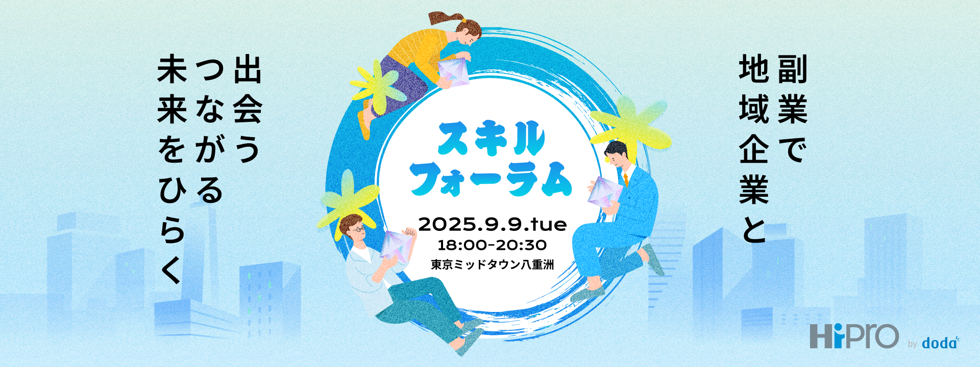 【9/9(火)東京開催】スキルフォーラム~副業で地域企業と出会う・つながる・未来をひらく~イベントのご案内 2025年08月08日 09:59 更新 セミナーの詳細を確認する9月8日(月)23:59 応募締切※本セミナーへの応募にはHiPro Directへのログインが必要です。 地域発、こだわりの商品を手がける地域企業を十数社集め、実際の商品に触れながら、副業案件を探すことができるオフラインイベントのご案内です。 ========================================【本イベントの特長】・東北から九州まで、全国のさまざまな地域企業が東京に集結副業募集企業が、自社の取り組みや課題、副業人材に対する期待についてプレゼンテーションを実施します。参加者は、地域や企業の魅力に触れながら、自身のスキルを活かす可能性を探ることができます。また、会場内には企業ブースとコミュニケーションエリアを設け、企業と直接対話できる場を提供します。各社の商品に触れたり、課題解決のアイデアをディスカッションしたりする等、さまざまな形での交流が可能です。 ・ジョブコードを活用し、地域企業 と“スキル起点”でつながるジョブコードとは、職種を“業務”や“タスク”といったレベルにまで分解、“ジョブ”という単位に再定義したものです。本イベントでは、事前に参加者一人ひとりのジョブコードを割り出すことで、スキルマッチ度の高い企業を優先的に周ることができます。※イベントへの参加申し込み後、9/1までに自己紹介文(500文字以上推奨)を「HiPro Direct」内のマイページに入力・保存すると、この自己紹介文をもとにジョブコードを割り出し、イベント前日までにスキルが活かせる出展企業や案件を登録メールアドレス宛にお送りします。 【こんな方におすすめ】・地方副業に興味があり、一歩踏み出したい方・企業担当者とのコミュニケーションを重視される方・実際に関わる商品のイメージを掴みたい方 【開催概要】・日時:2025年9月9日(火)18:00~20:30(開場17:30)・主催/運営:パーソルキャリア株式会社 【プログラム(予定)】 18:05~18:45 トークセッション:「スキル」を活かし、未来をひらく~地域を舞台にチャレンジすることの意義とは~ 株式会社中川政七商店 産地支援事業部 経営支援課 コンサルタント 横山 遼大朗氏 浜弥鰹節株式会社 代表取締役社長 木村 忠司氏 株式会社ヤッホーブルーイング よなよなエールFUN×FAN団(ファンイベントユニット) ディレクター 原 謙太郎氏 18:50~19:20 企業ピッチ:「スキル起点」で、出会う~地域を動かす、共創の仲間たちへ~出展企業各社 19:25~19:35 マッチングデモンストレーション:ジョブコードで、つながる~新しいキャリアの描き方~パーソルキャリア株式会社 Business_innovation統括部 長谷川 椋平 19:40~20:30 懇親会 ■留意事項・お申し込み後、抽選で「当選」となった場合のみご参加いただけます。※抽選の結果は、お申込みから約1週間以内にお送りします。(8/12~15のお盆期間は除く)・9/1までにHiPro Directマイページ内の自己紹介文のご登録をいただいた方に対して、ジョブコードを生成し、おすすめの企業のご案内をイベント前日までにメールにて行います。ご同意の上ご参加ください。・9/1以降にお申込みいただいた場合はレコメンドの案内ができない旨ご了承ください。・本イベントでは、当社ウェブサイトにて掲載するイベントレポート作成のため、当日写真・動画撮影を行います。参加者の皆様には、これらの写真・動画に映り込む可能性があることをご理解いただき、ご同意の上ご参加ください。・本イベントの出展企業に応募する際は、必ずHiPro Direct経由でご応募をお願いします。 ======================================== セミナーの詳細を確認する9月8日(月)23:59 応募締切※本セミナーへの応募にはHiPro Directへのログインが必要です。 皆様からのご応募、お待ちしております! 関連記事 【2025/8/20(水)18:30~】副業を「AIで効率的に進める秘訣」を学びませんか?副業15件の実績を持つプロ秘伝!AIによる副業効率化セミナー forLocal案件とは 面談ガイド(個人会員) 夏季休業中のお問い合わせ対応について 条件合意の仕方(個人会員)